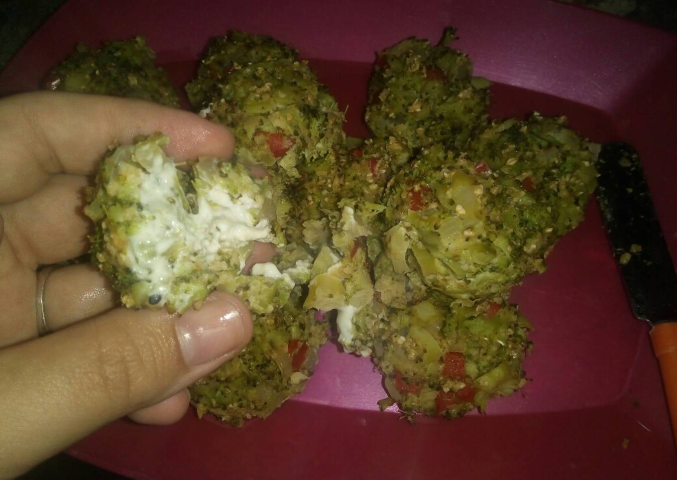 Albóndigas de brócoli rellenas de queso crema