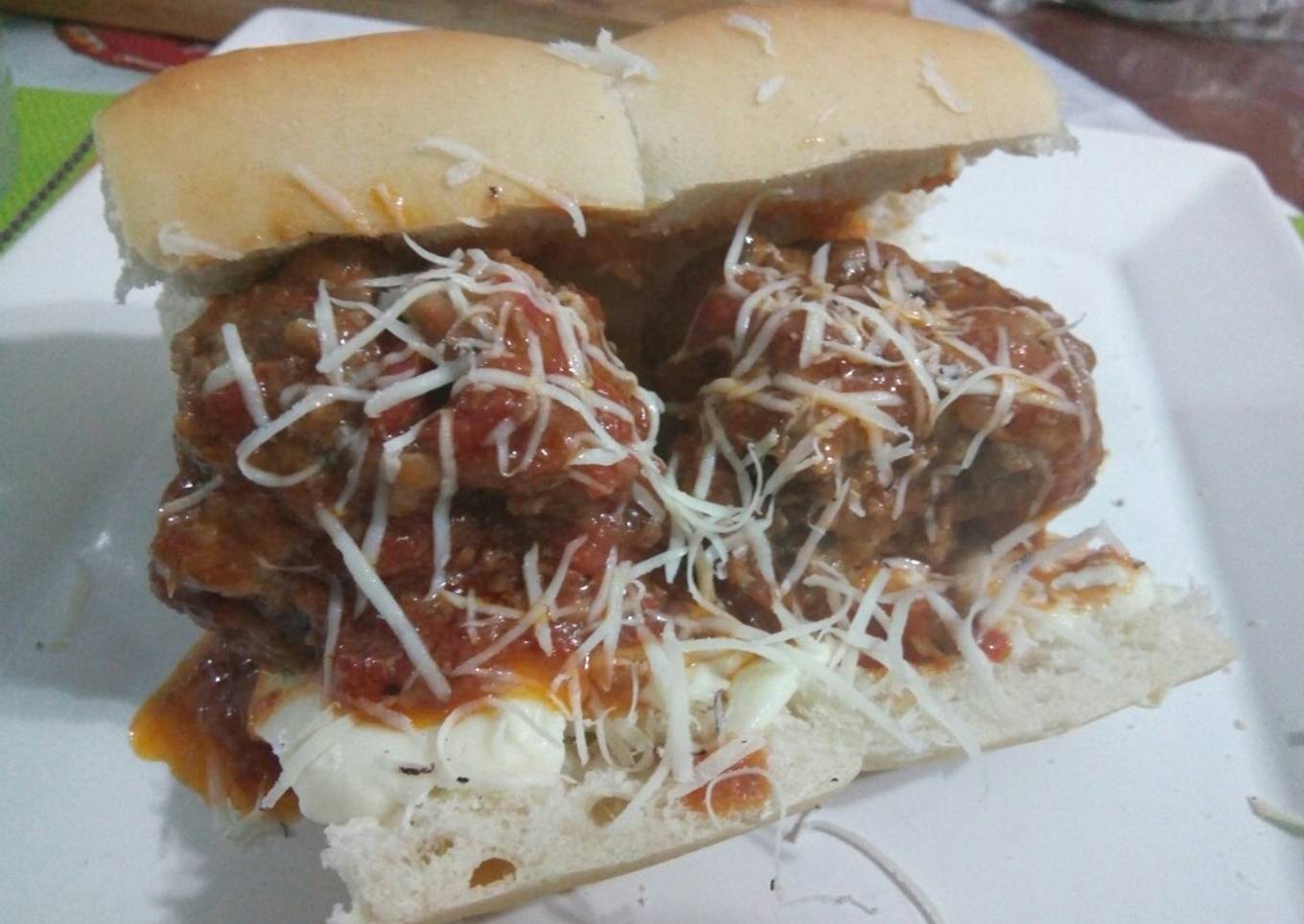 Un sándwich diferente con albóndigas y una buena salsa de tomate.