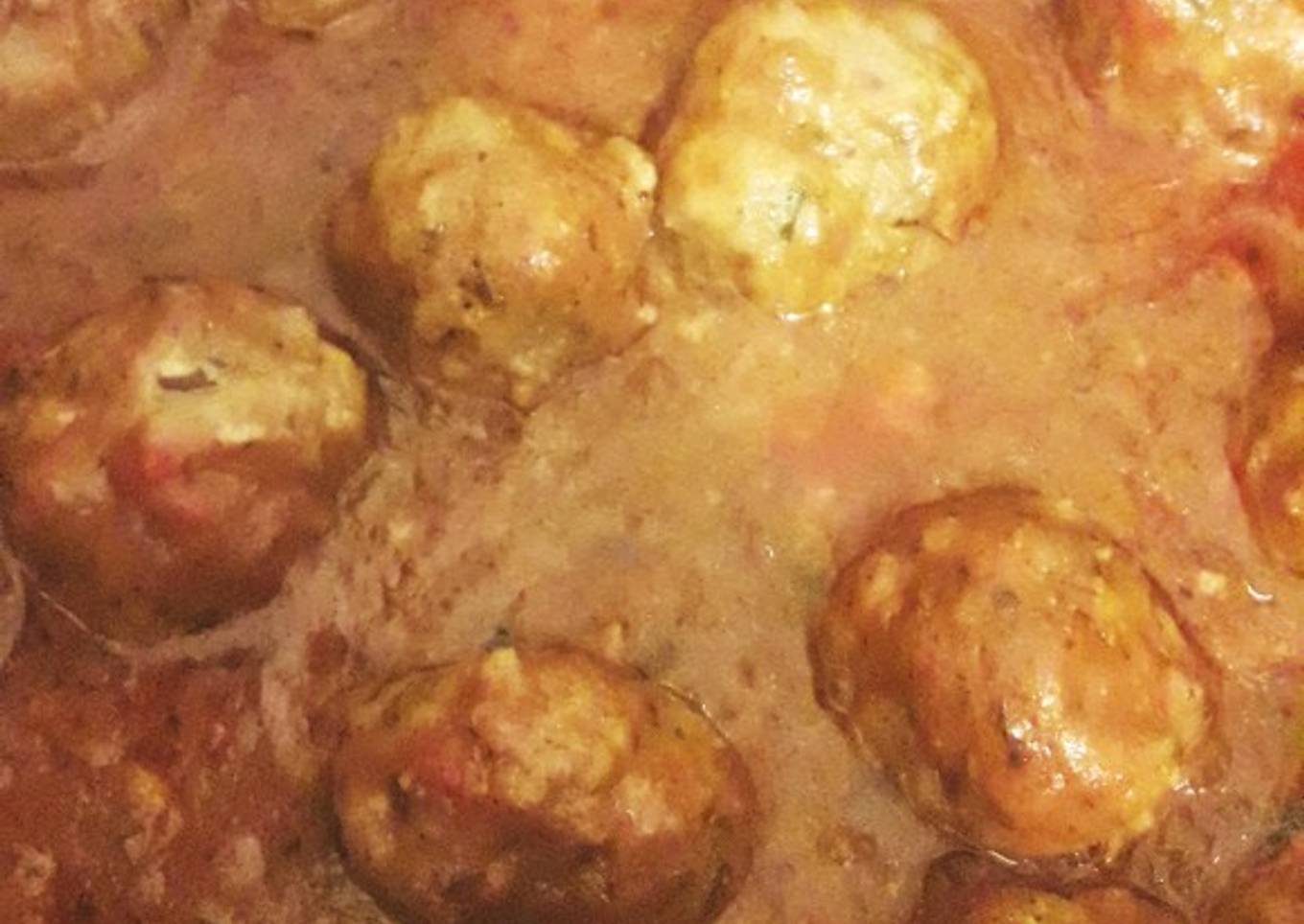 - En un plato poner la harina..formar bollitos no muy grandes de carne y pasar por la harina y acomodar en la olla ya con la salsa lista ! Y esperar a que se cocinen.. m谩s o menos 30 min. Si no son muy grandes. La podes acompa帽ar con arroz o fideos.