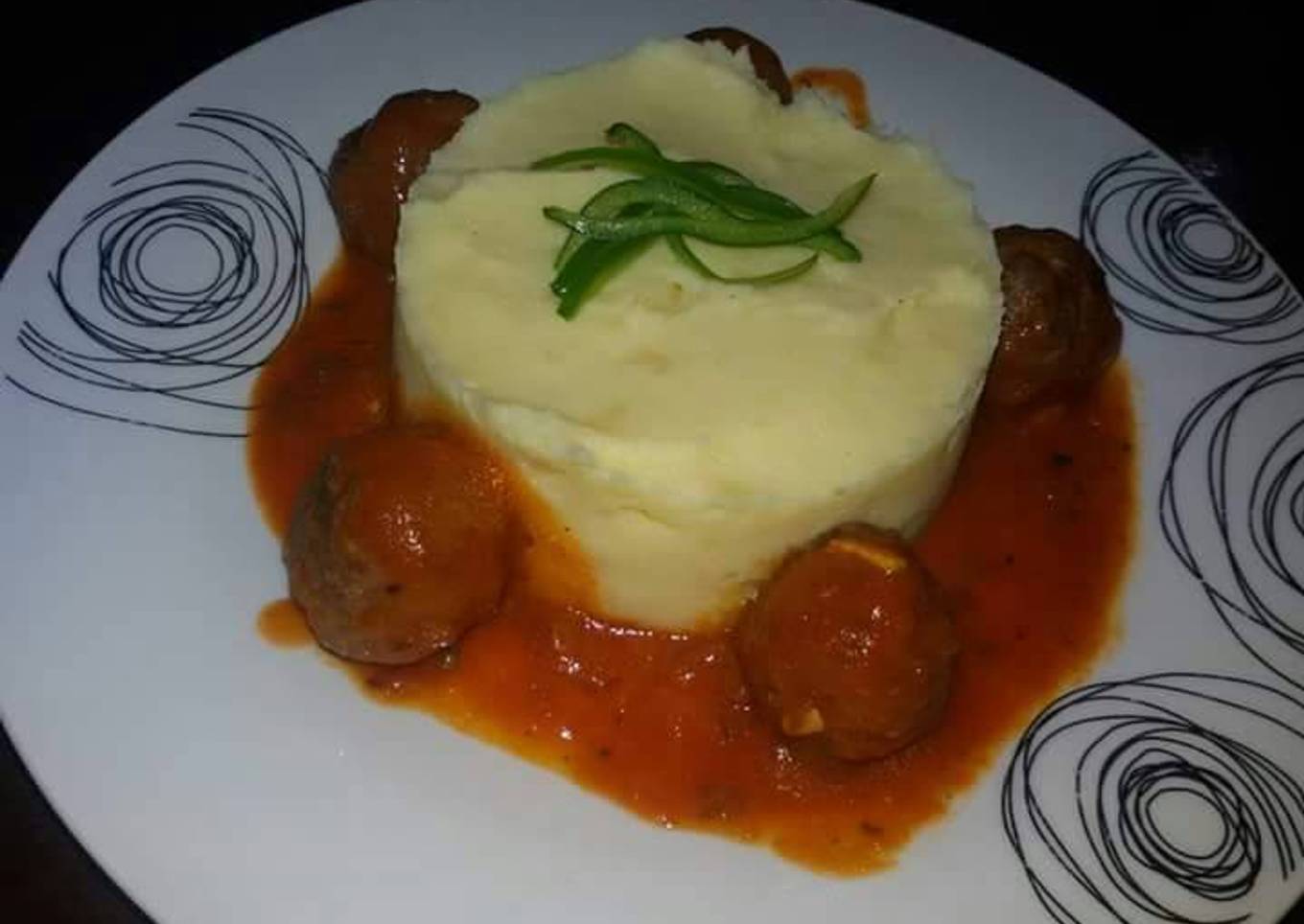 Albóndigas con salsa y puré de papas