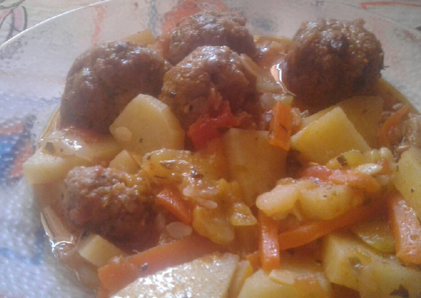 - En una olla debemos poner a freír las albóndigas vuelta y vuelta e ir integrando las verduras una vez que ya este todo frito agregamos agua hasta tapar las verduras y agregamos vino y un cubito de caldo, también condimentos los que deceen