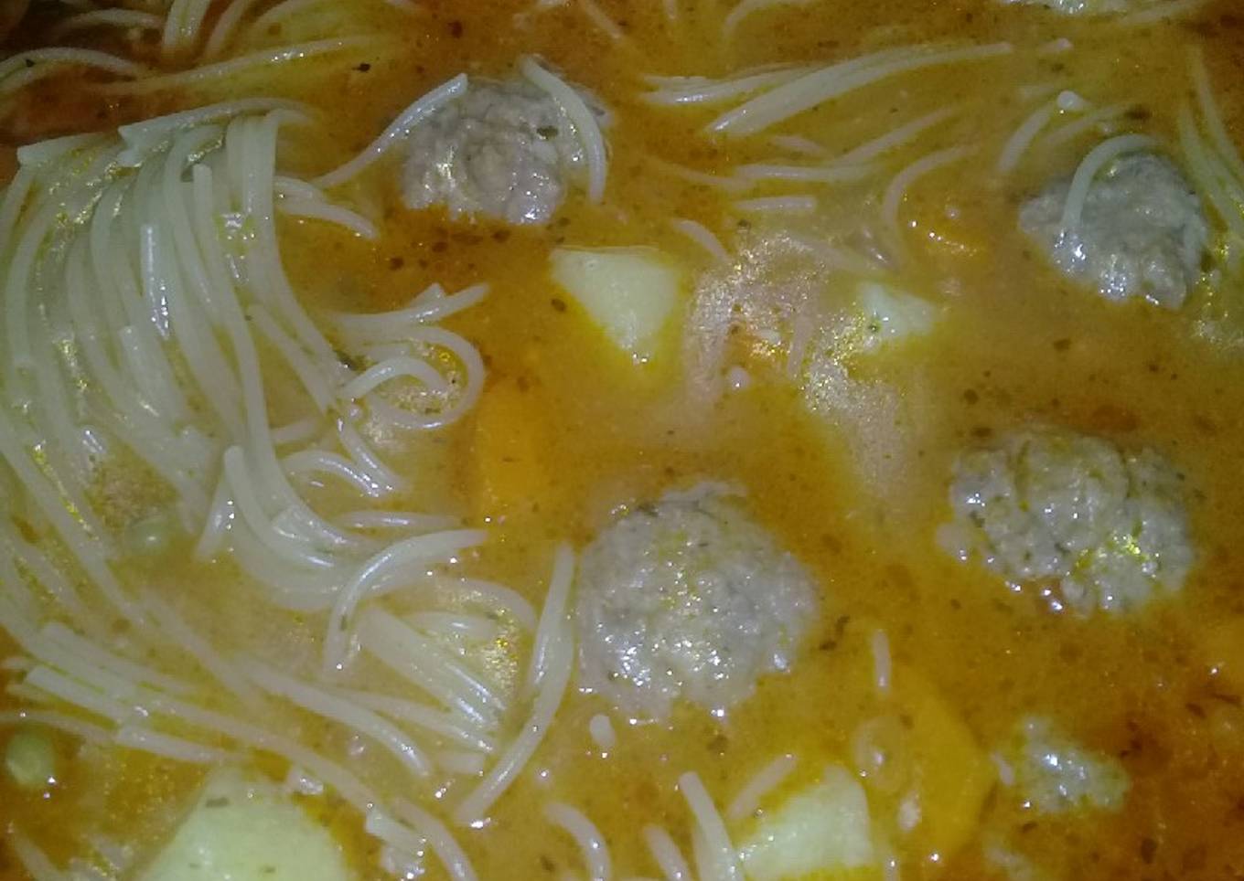 - Dejar hervir unos 15' y agreg贸 las alb贸ndigas dejo hervir 20' m谩s y agreg贸 las papas en dados
