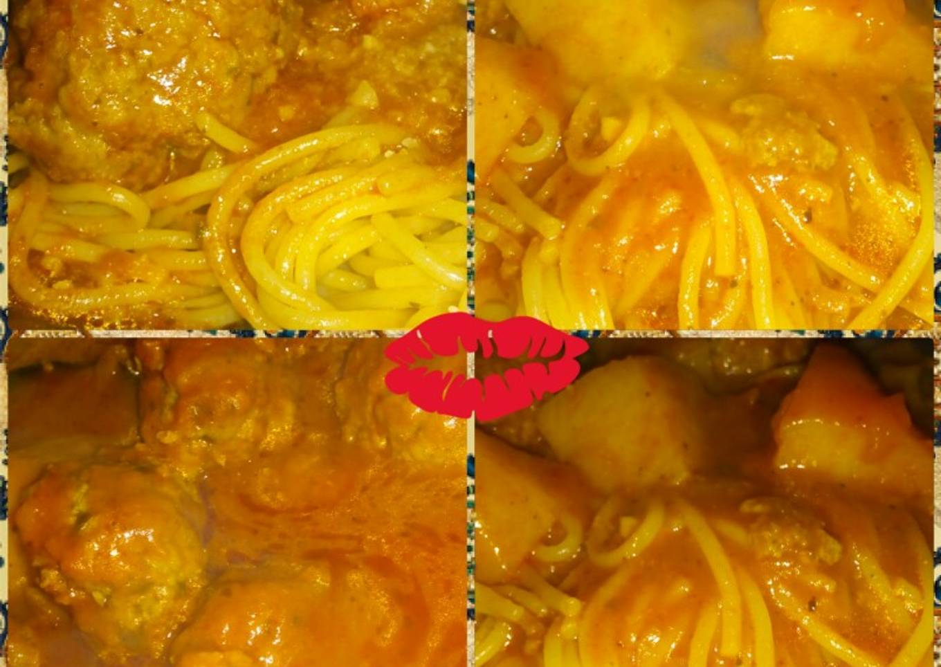 Fideos con salsa estofado de alb贸ndigas馃槤
