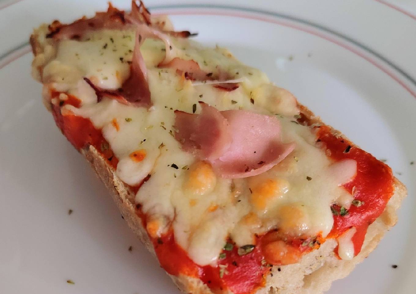 - Es tan sencillo que no hace falta explicar mucho. Cortar el pan longitudinalmente. Untar con tomate, añadir orégano, el queso y el jamón. Introducir en la freidora.